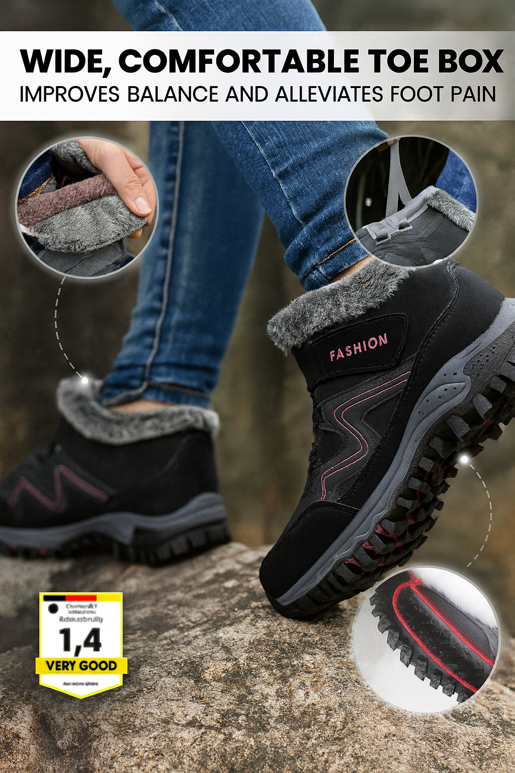 OrthoFit™ promotes a healthy walking posture, reduces pressure, and strengthens stabilizing muscles — ideal for daily wear, long walks, and outdoor winter activities.